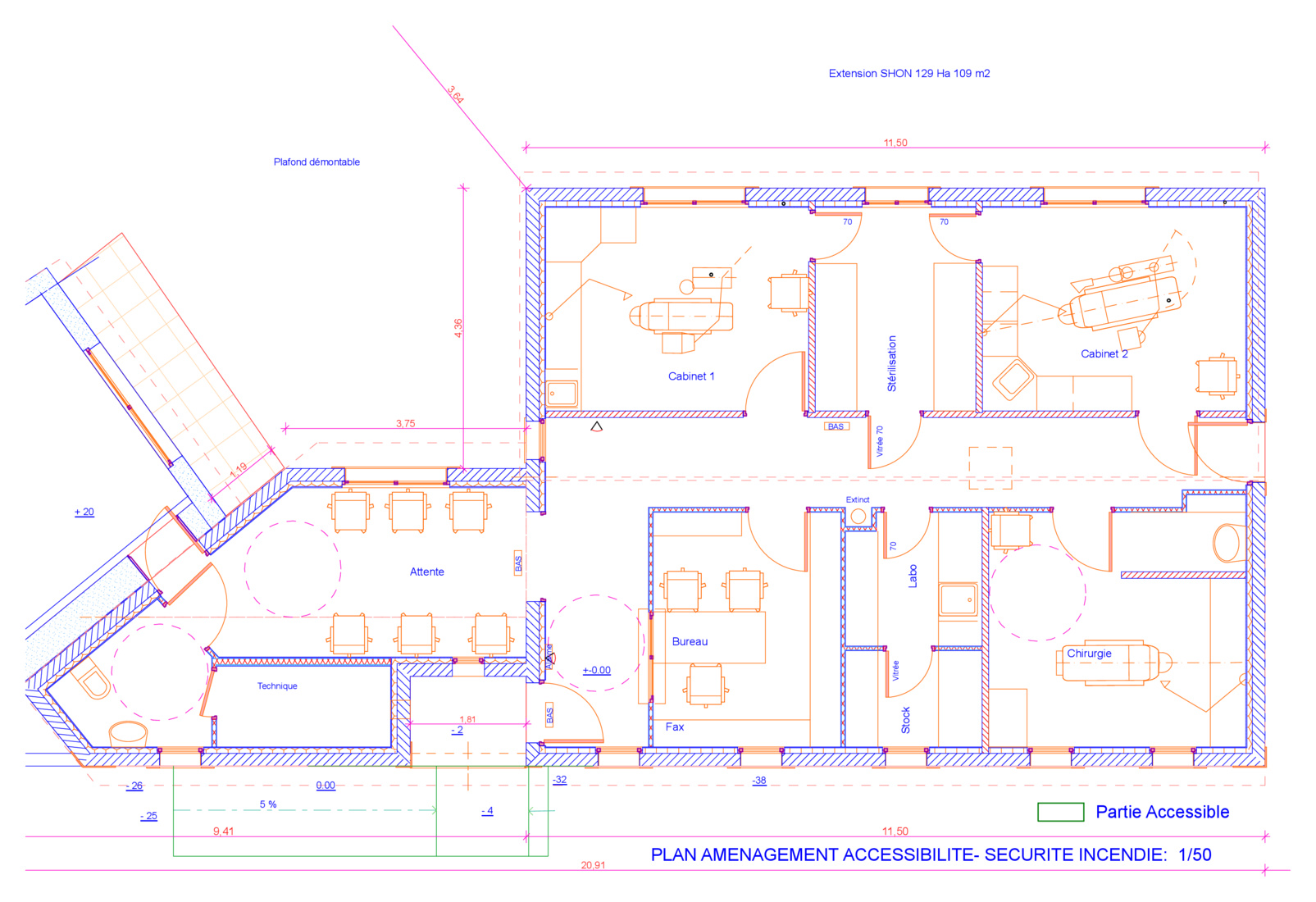 Extension de 210 m2 pour porter le cabinet à 344 m2