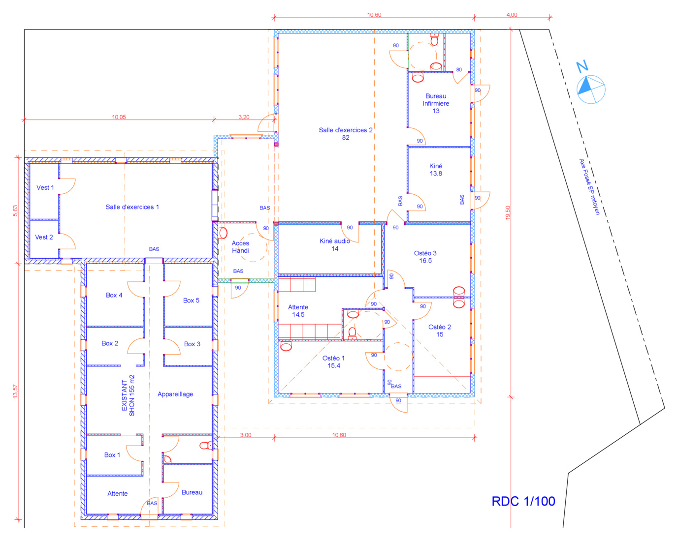 Extension d'un CABINET DE KINESITHERAPIE (Gironde)