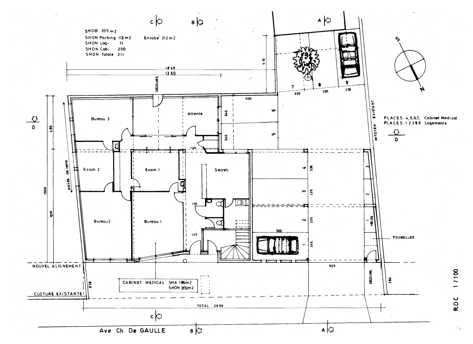 Projet comprenant : 1 cabinet de 186 m2 + 3 logements pour 186 m2Mission :
