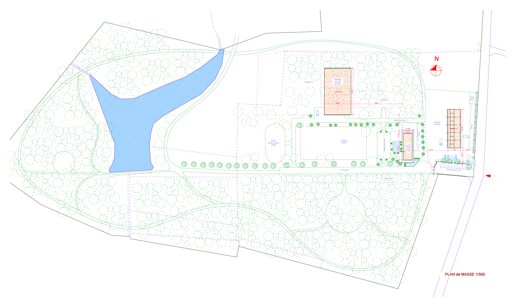 Projet de construction d'un Centre Equestre comprenant Pool-House, Manège couvert, Ecuries, Carrieres, Rond de longe, Pistes sur un ensemble boisée de 12 Ha dans la Forêt de la Double, à St Antoine