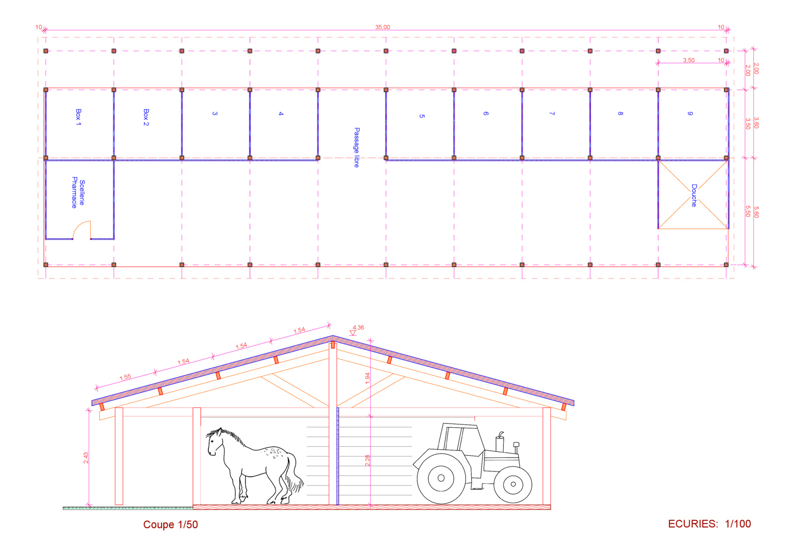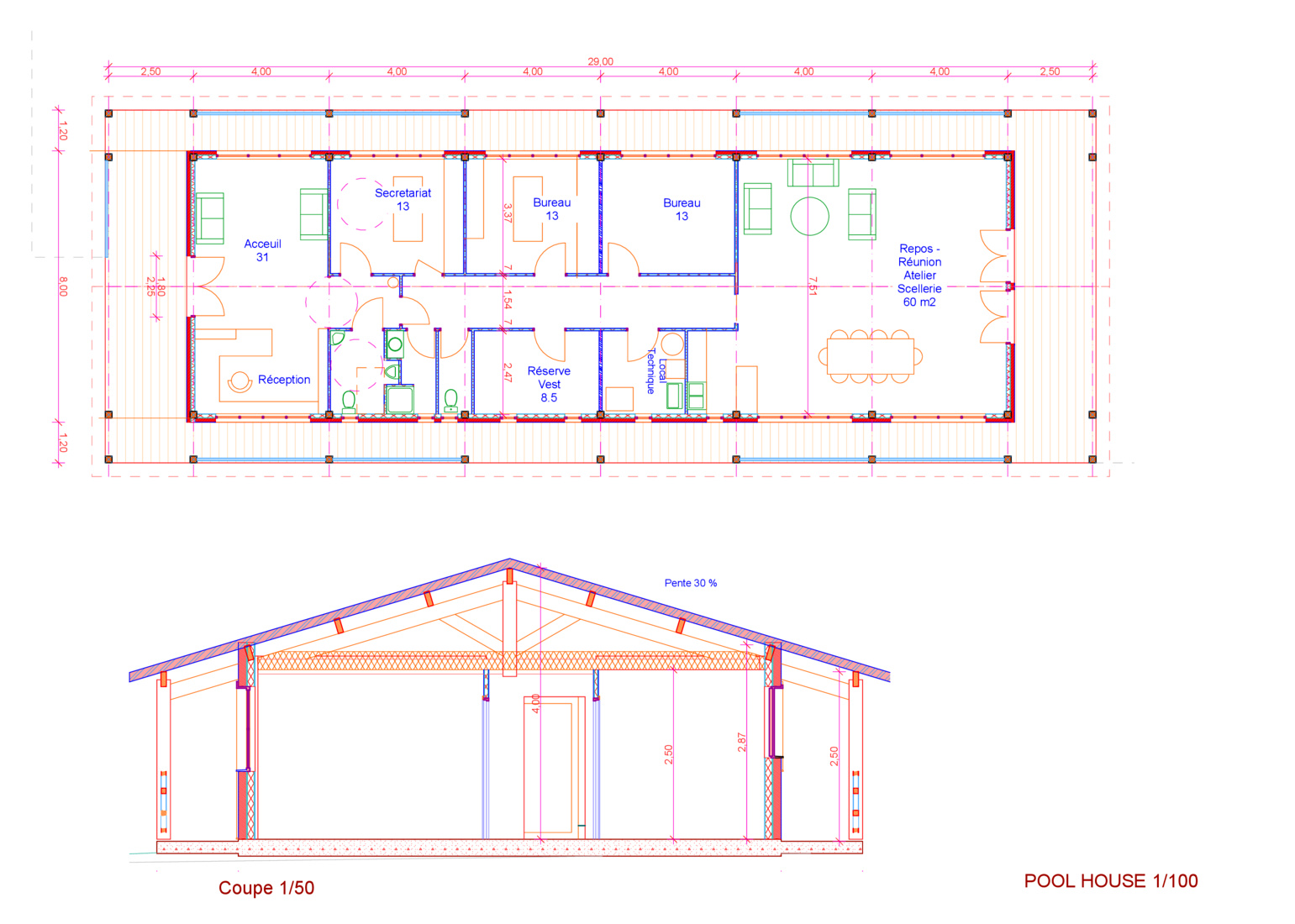 Structure de 31 m de portée sur 70 m de longBatiments Publics